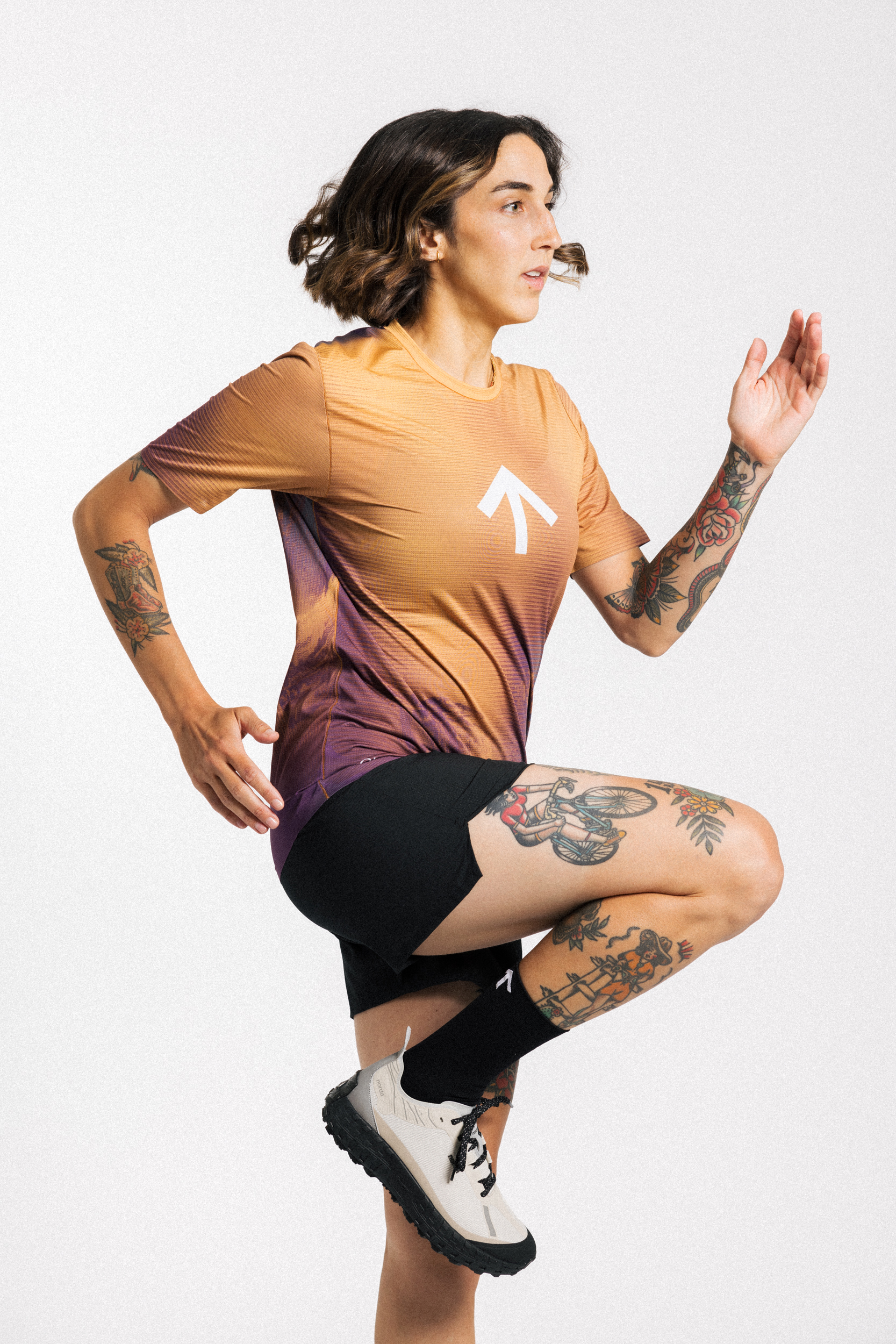 Разработана для того, чтобы выдерживать суровые условия ультрамарафонов, но также удобна и для повседневных тренировок. Наша фирменная AROW Lightweight Tee — это унисекс-футболка, весом всего 90 г, с функцией отвода влаги и высокой воздухопроницаемостью. Она активно работает вместе с вами, позволяя коже дышать даже в условиях интенсивной нагрузки. Этичное производство в Португалии из итальянской ткани высшего класса, изготовленной на 100% из переработанных материалов, демонстрирует, что высокие характеристики могут сочетаться с ответственностью перед обществом и окружающей средой. Максимальная производительность, минимальный след.